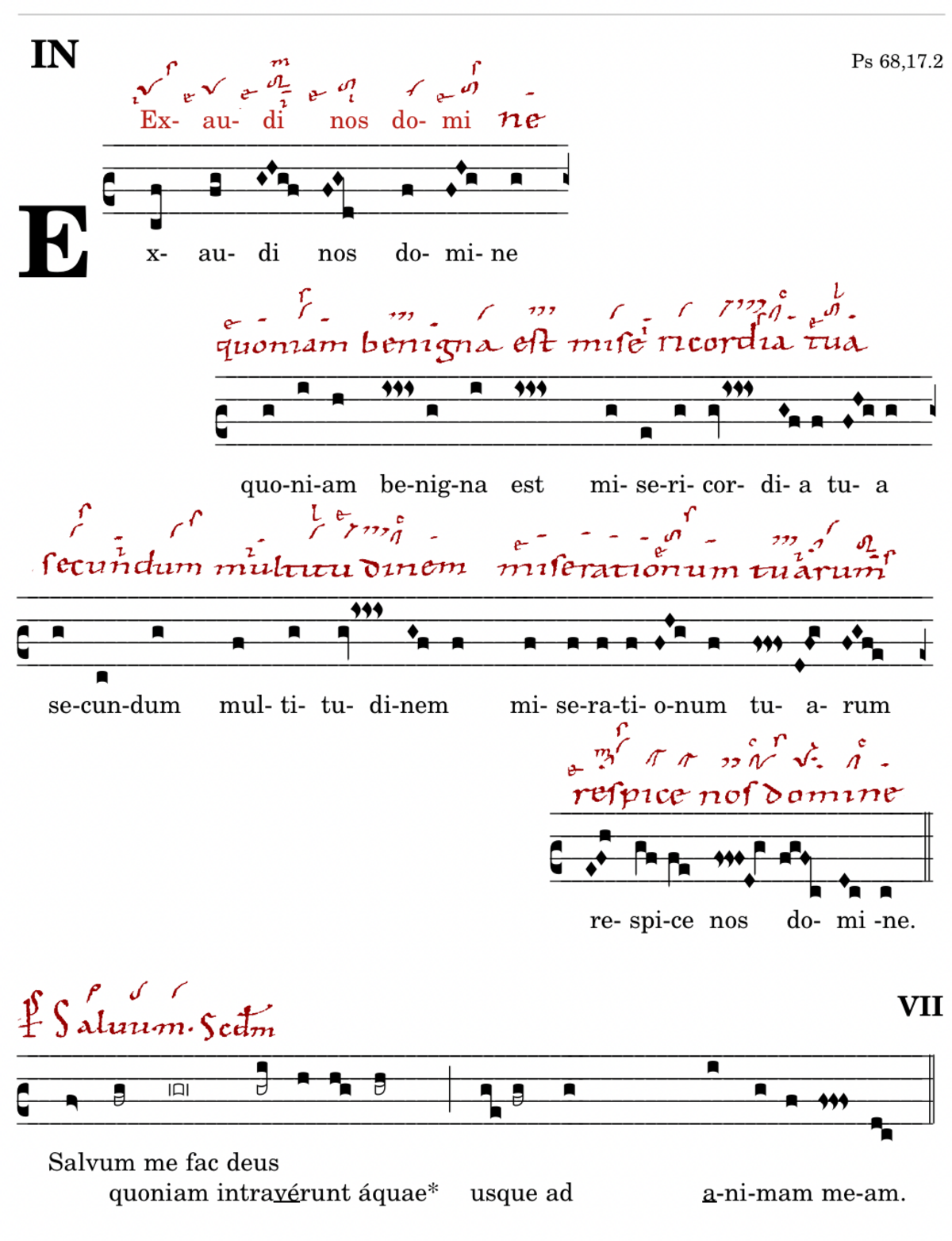 Exaudi nos domine / quoniam benigna est misericordia tua / secundum multitudinem miserationum tuarum / respice nos domine.