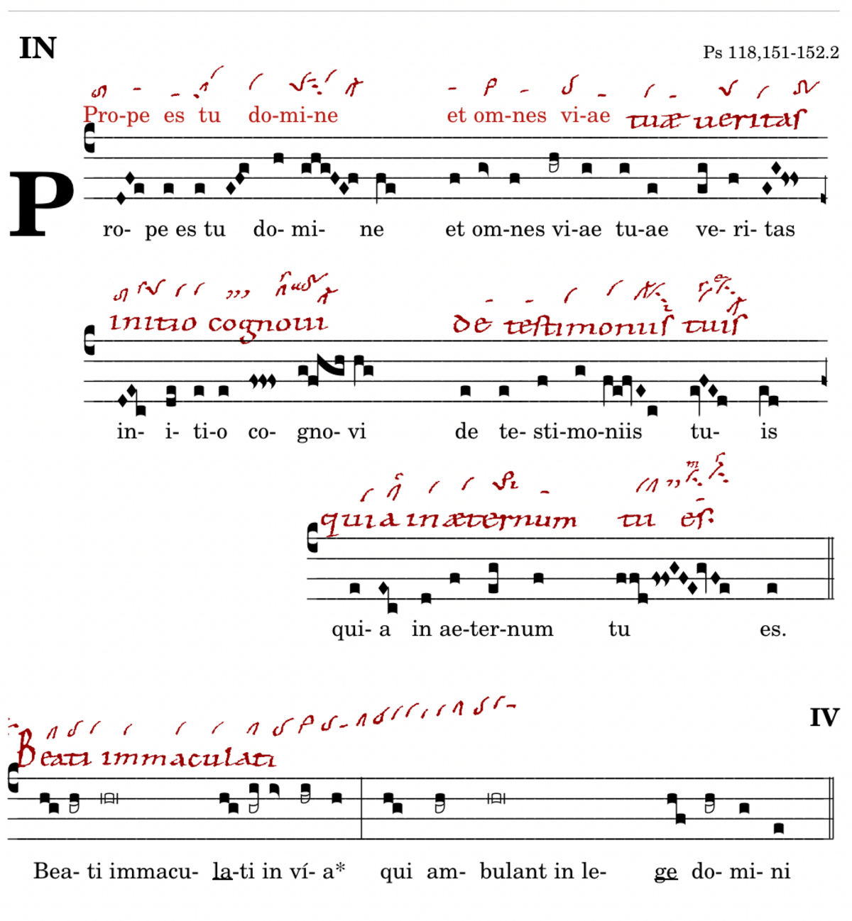 Prope esto domine / et omnes viae tuae veritas : initio / cognovi de testimoniis tuis / quia in aeternum / tu es.