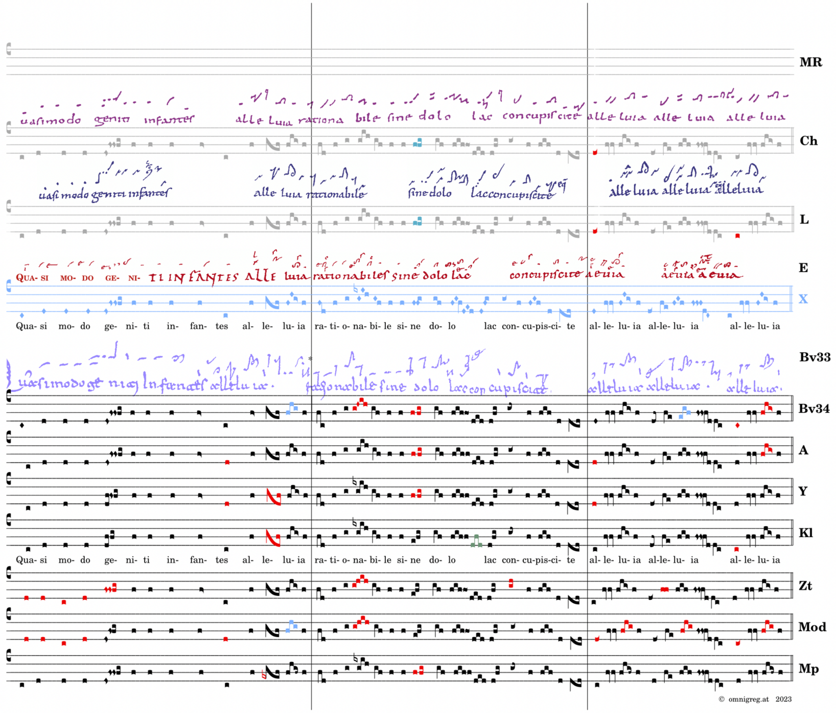 Quasi modo geniti infantes / alleluia / rationabile / sine dolo / lac concupiscite / alleluia alleluia alleluia.