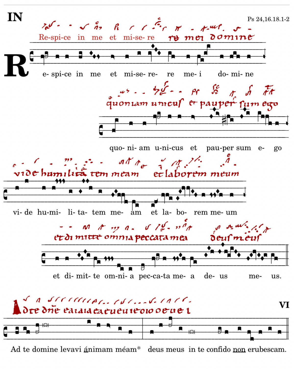 Respice in me / et miserere mei domine / quoniam unicus et pauper sum ego / vide humilitatem meam / et laborem meum / et dimitte omnia peccata mea / deus meus.