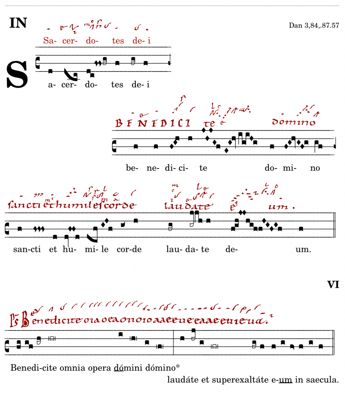 Sacerdotes dei / benedicite domino / sancti et humile corde / laudate deum.