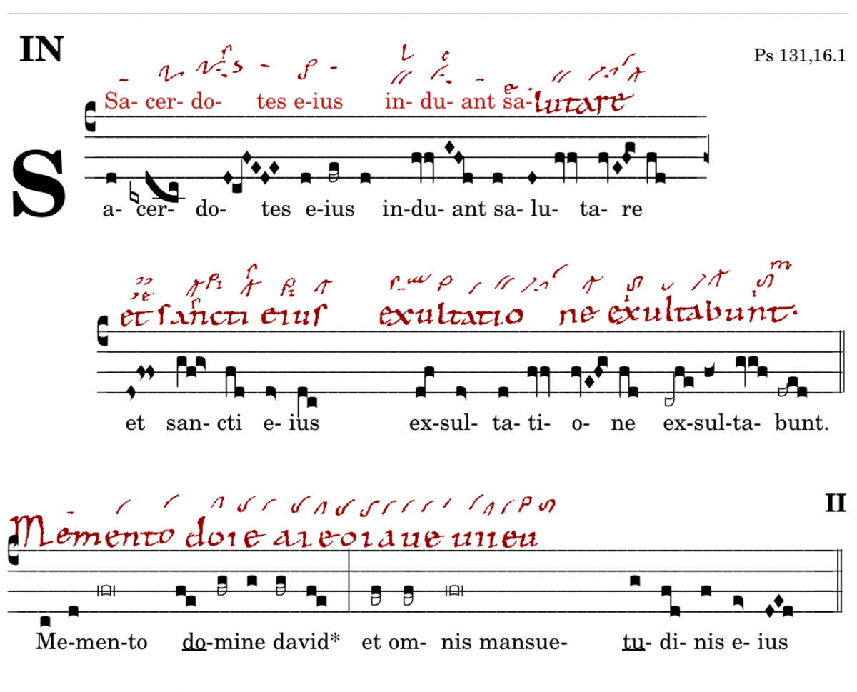Sacerdotes eius / induant salutare / et sancti eius / exsultatione exsultabunt.