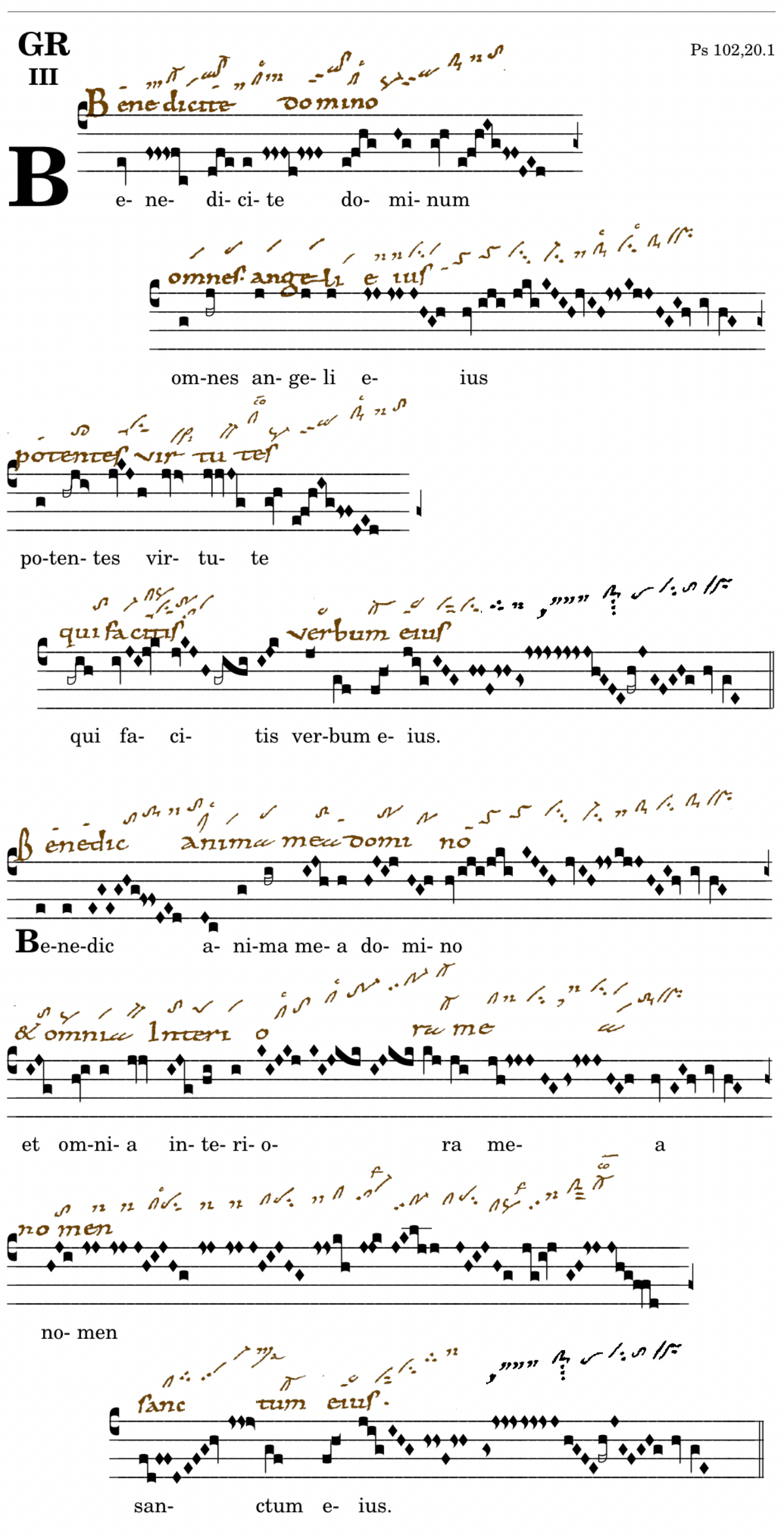 Benedicite dominum omnes angeli eius * potentes virtutes qui facitis verbum eius.