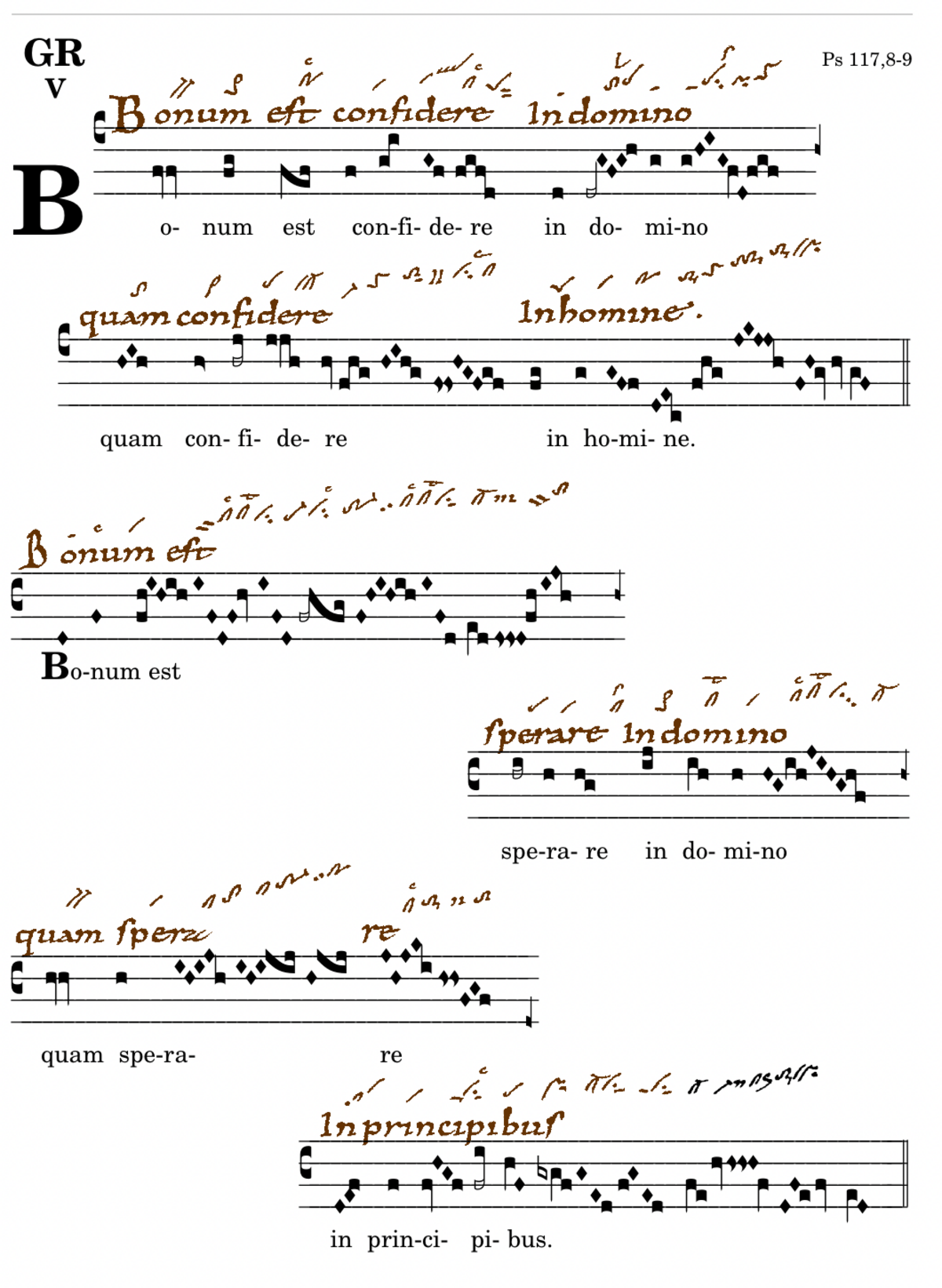 Bonum est confidere / in domino * quam confidere / in homine. V. Bonum est / sperare in domino * quam sperare / in principibus.