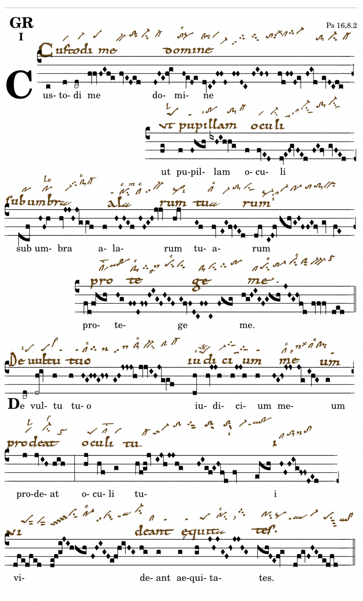 Custodi me domine / ut pupillam oculi * sub umbra alarum tuarum / protege me. V. De vultu tuo / iudicium meum / prodeat * oculi tui / videant aequitates.