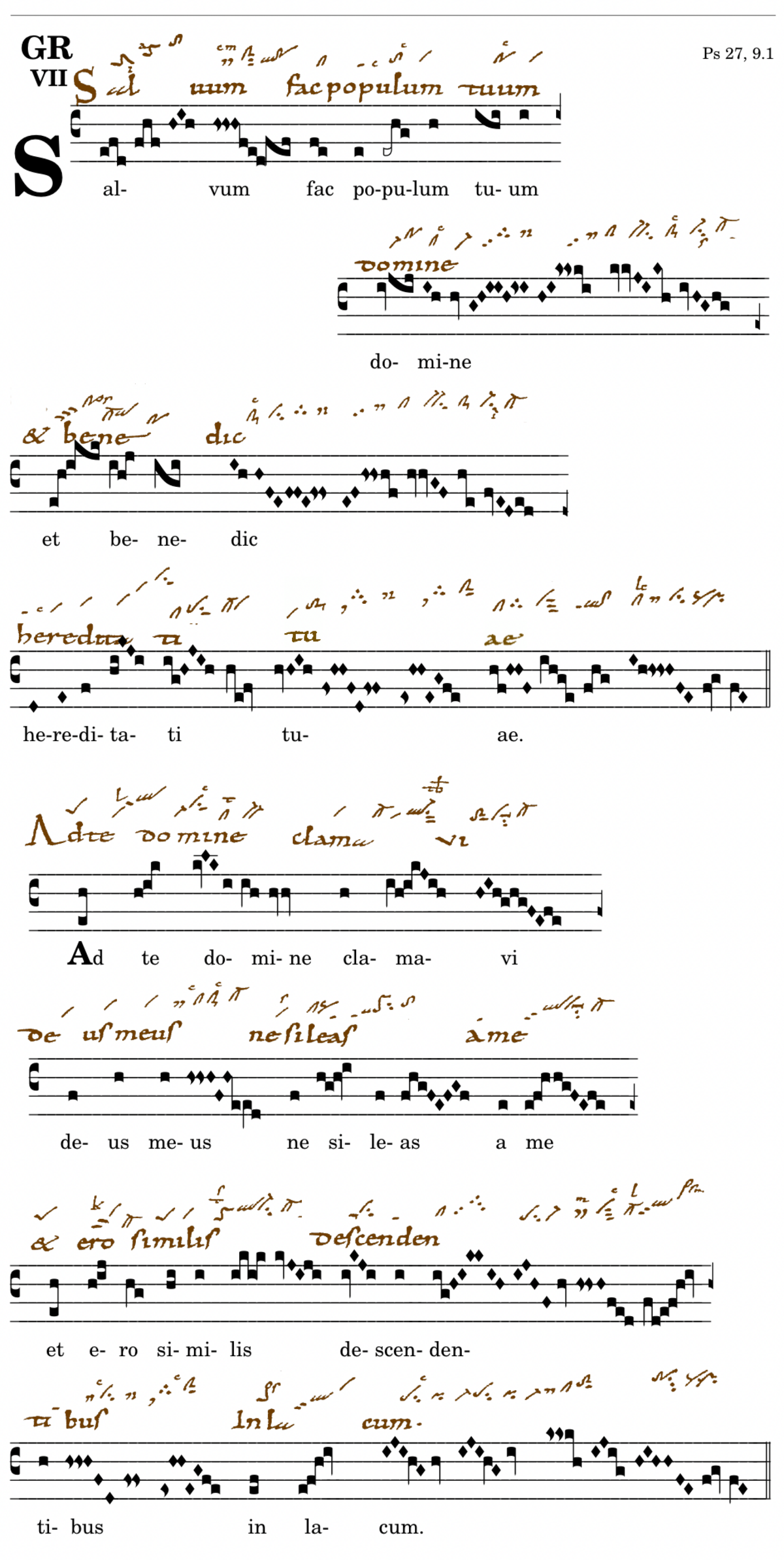 Salvum fac populum tuum / domine * et benedic / hereditati tuae. V. Ad te domine clamavi / deus meus ne sileas a me * et ero similis descendentibus / in lacum.