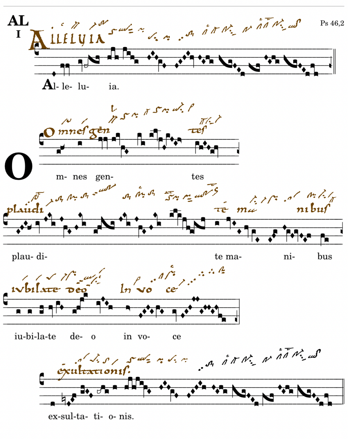 V. Omnes gentes / plaudite manibus * iubilate deo / in voce exsultationis.