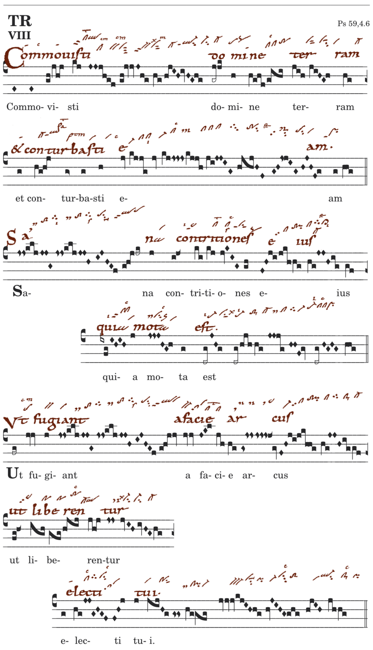V1. Commovisti domine terram * et conturbasti eam. V2. Sana contritiones eius quia mota est. V3. Ut fugiant a facie arcus * ut liberentur electi tui.