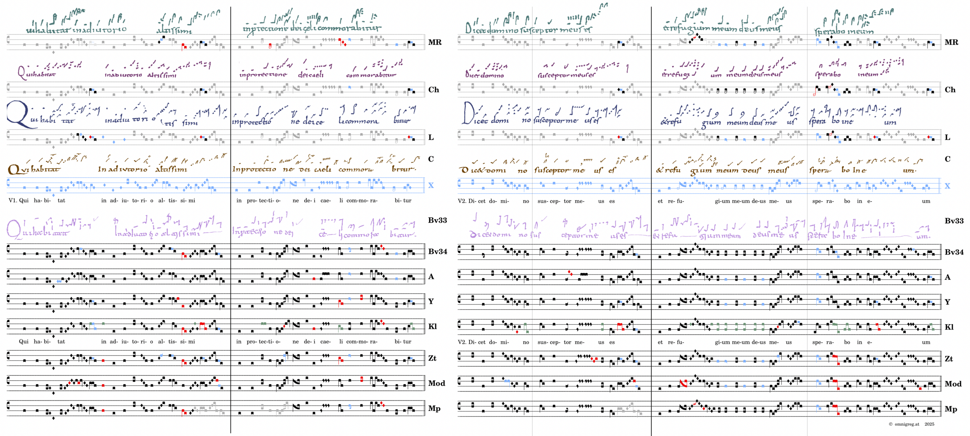 V1. Qui habitat // in adiutorio altissimi * in protectione / dei caeli commorabitur. V2. Dicet domino / susceptor meus es * et refugium meum deus meus / sperabo in eum.