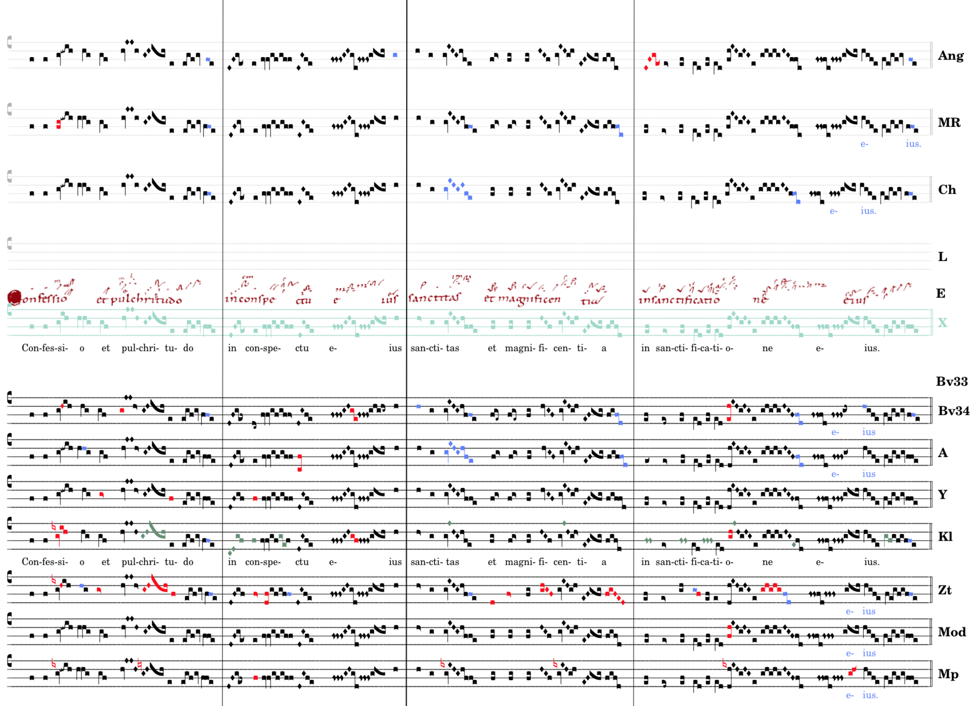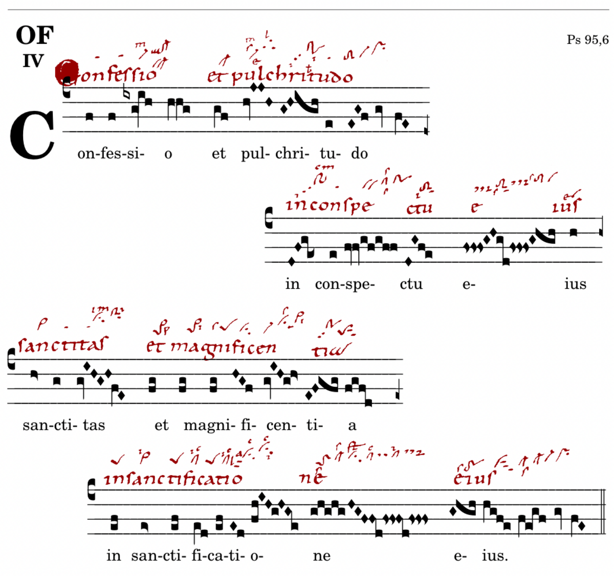 Confessio et pulchritudo / in conspectu eius / sanctitas et magnificentia / in sanctificatione eius.