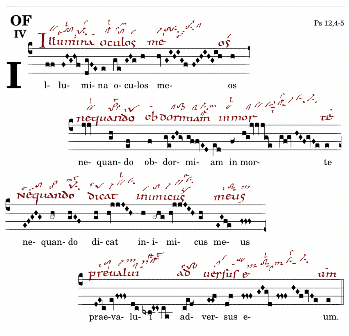 Illumina oculos meos / nequando obdormiam in morte * nequando dicat inimicus meus / praevalui adversus eum.