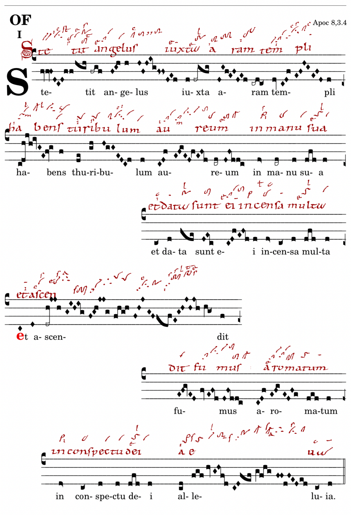 OF – V1 – V2 xxx ↘️ xxx Michaelis 29. 09.Stetit angelus iuxta aram templi / habens turibulum aureum in manu sua / et data sunt ei incensa multa / 📍et ascendit fumus aromatum / in conspectu dei alleluia.