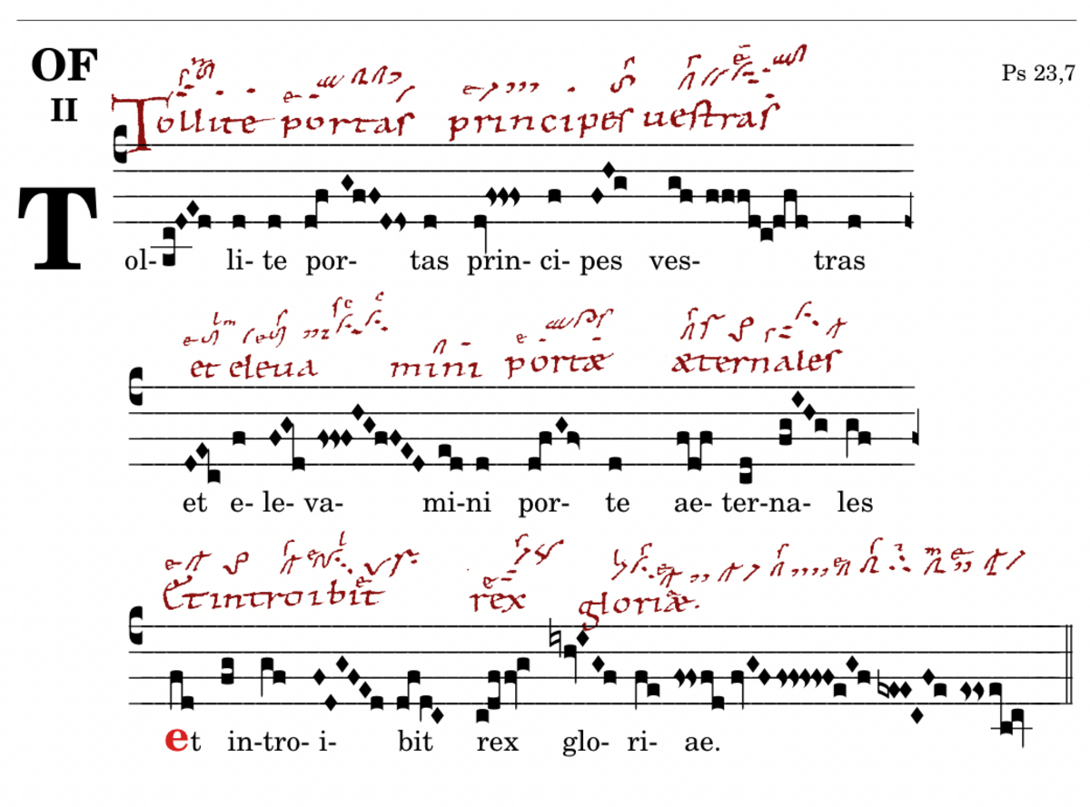 Tollite portas / principes vestras / et elevamini / portae aeternales / et introibit / rex gloriae.