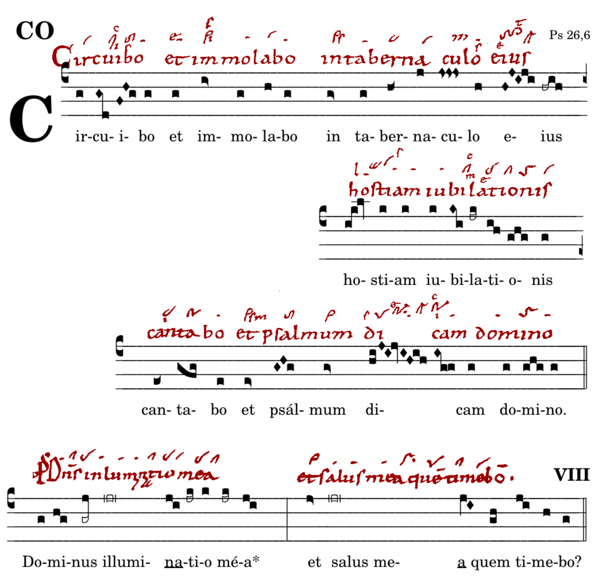 Circuibo et immolabo / in tabernaculo eius / hostiam iubilationis / cantabo et psalmum . dicam domino.
