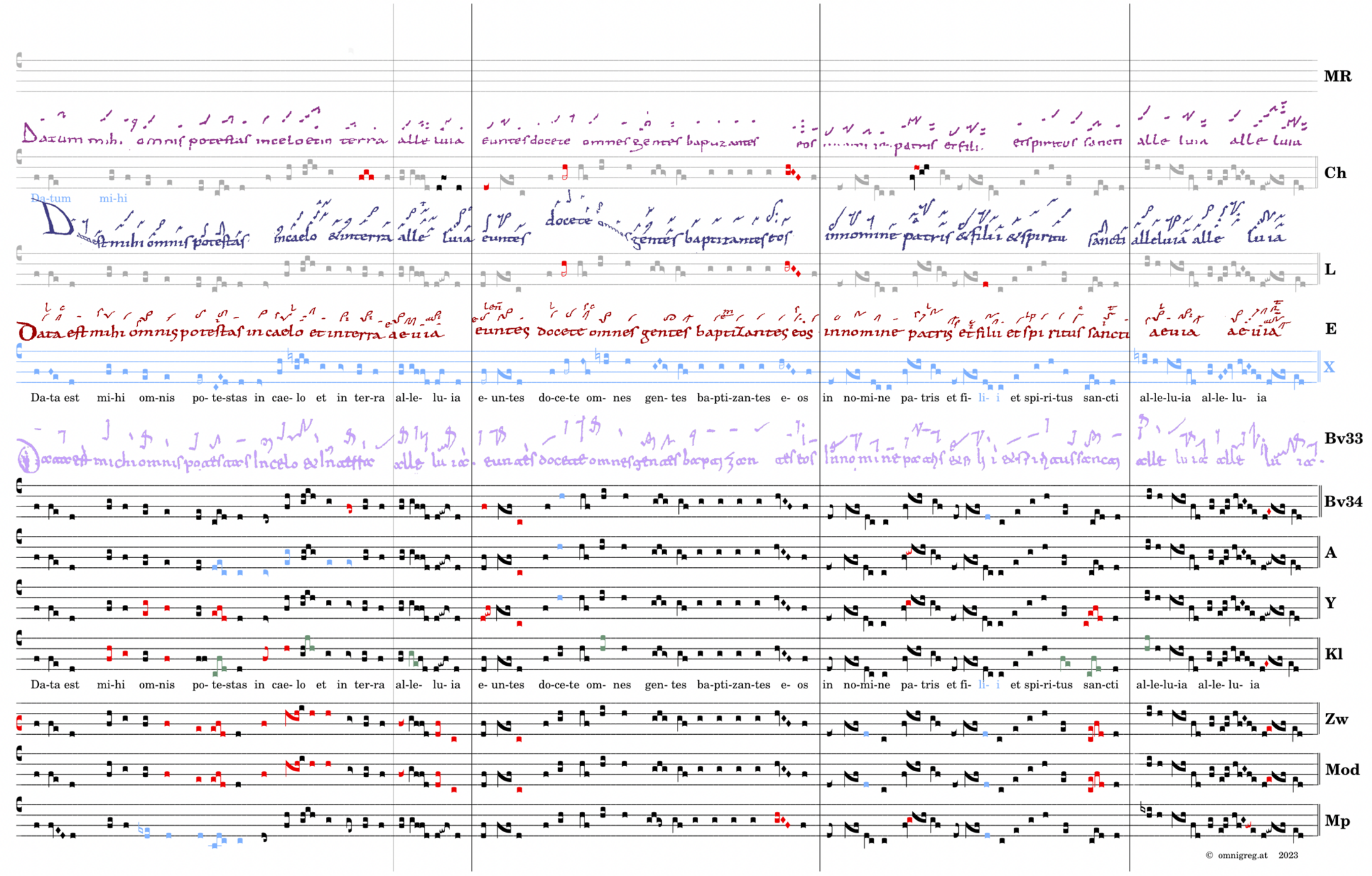 Data est mihi omnis potestas / in caelo et in terra / alleluia / euntes docete omnes gentes / baptizantes eos / in nomine patris et filii et spiritus sancti / alleluia alleluia.