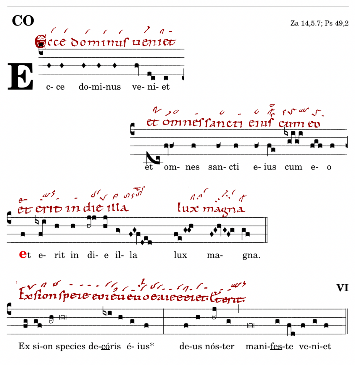 Ecce dominus veniet / et omnes sancti cum eius / et erit in die illa / lux magna.