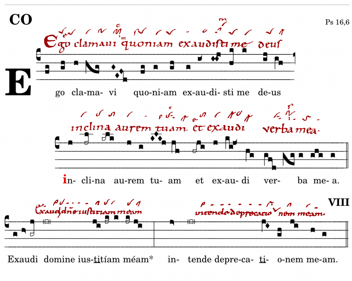 Ego clamavi / quoniam exaudisti me deus / inclina aurem tuam / et exaudi verba mea.