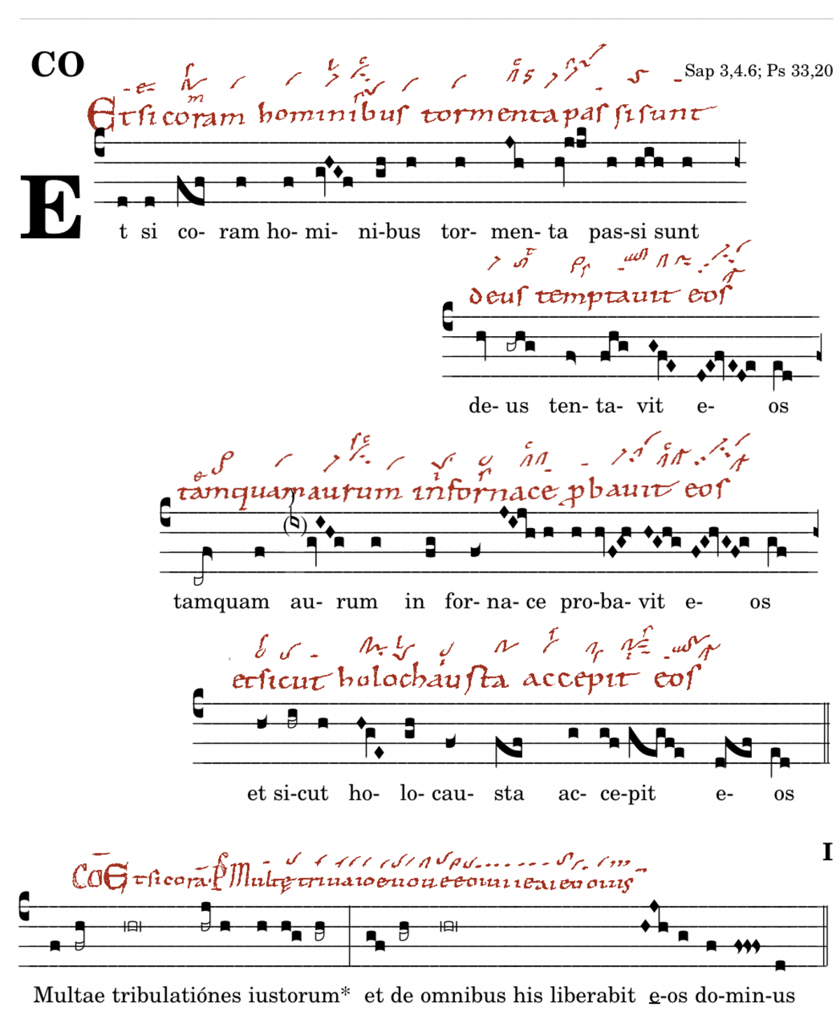 Et si coram hominibus tormenta passi sunt / deus temptavit eos / tamquam aurum in fornace probavit eos / et sicut holocausta accepit eos.