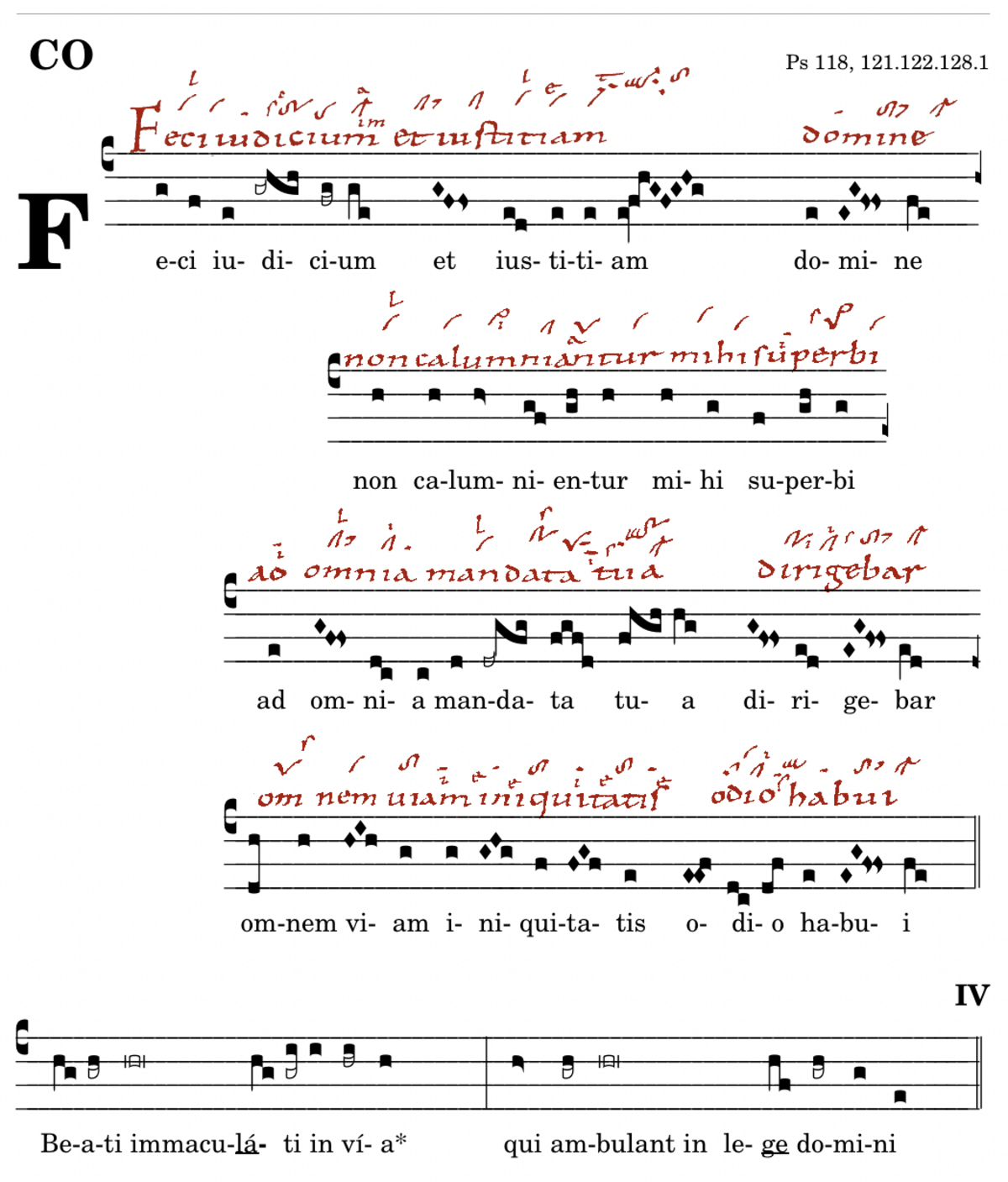 Feci iudicium et iustitiam domine / non calumniantur mihi superbi ad omnia mandata tua dirigebar / omnem viam iniquitatis odio habui.