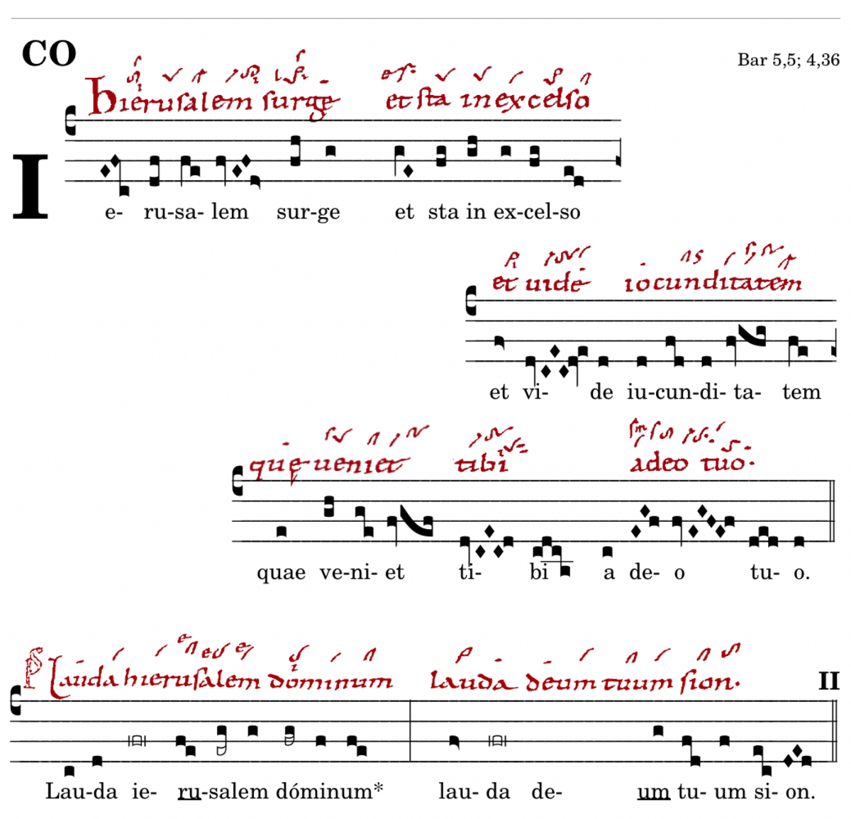 Ierusalem surge / et sta in excelso / et vide / iucunditatem / quae veniet tibi / a deo tuo.