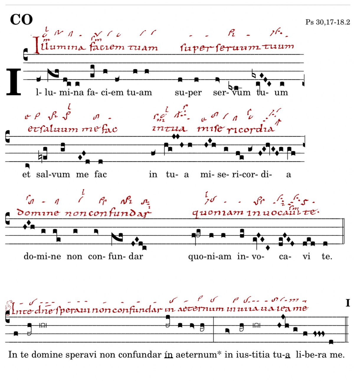 Illumina faciem tuam / super servum tuum / et salvum me fac / in tua misericordia / domine / non confundar / quoniam invocavi te.
