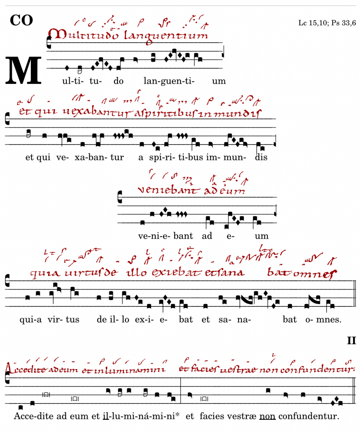 Multitudo languentium / et qui vexabantur a spiritibus inmundis / veniebant ad eum / quia virtus de illo exiebat / et sanabat omnes.