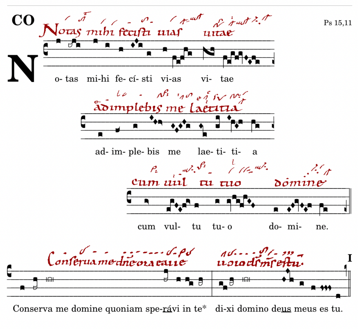 Notas mihi fecisti . vias vitae / adimplebis me . laetitia / cum vultu tuo domine.