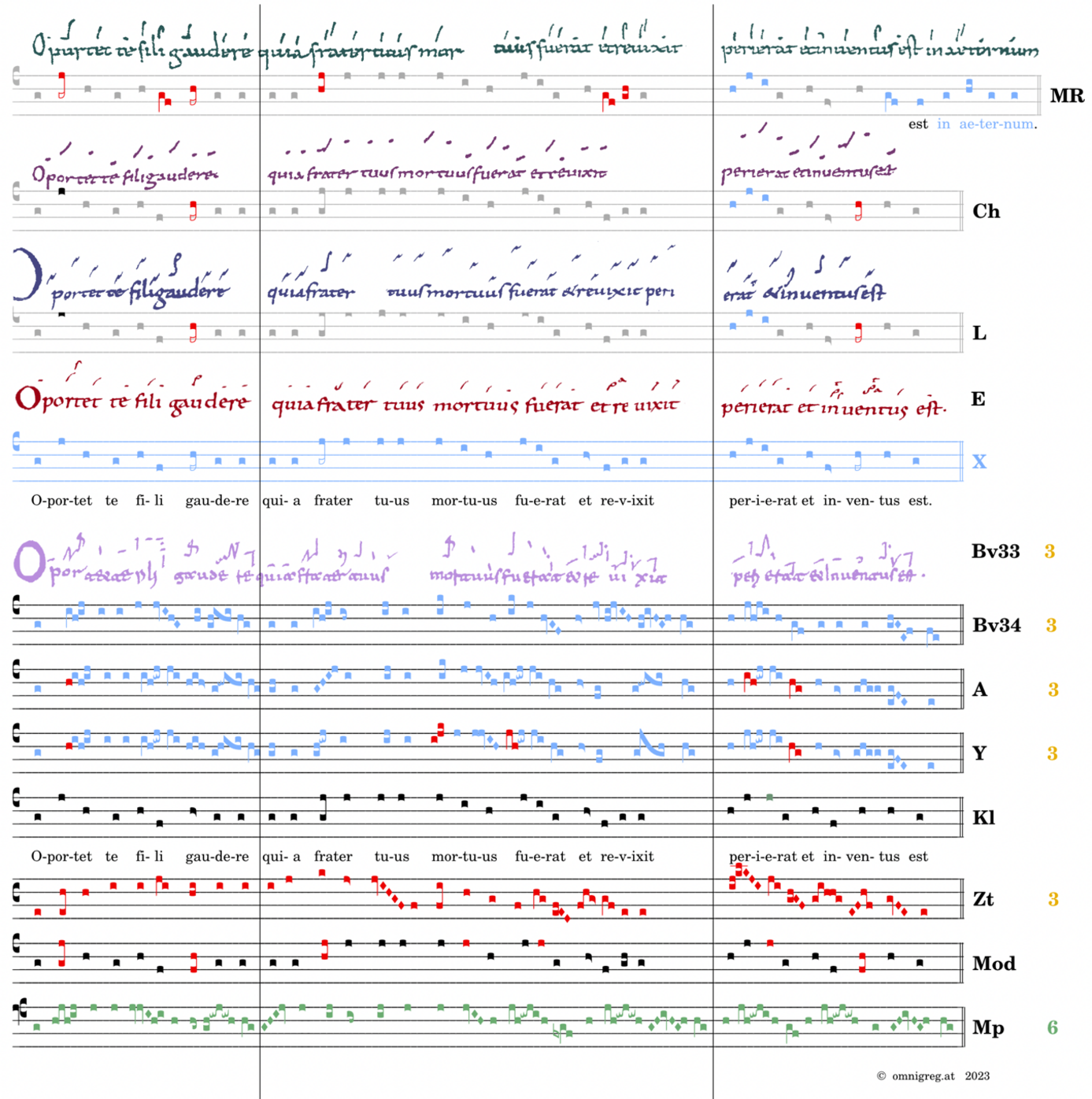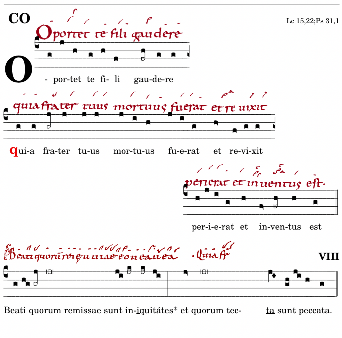 Oportet te fili gaudere / quia frater tuus mortuus fuerat et revixit / perierat et inventus est.