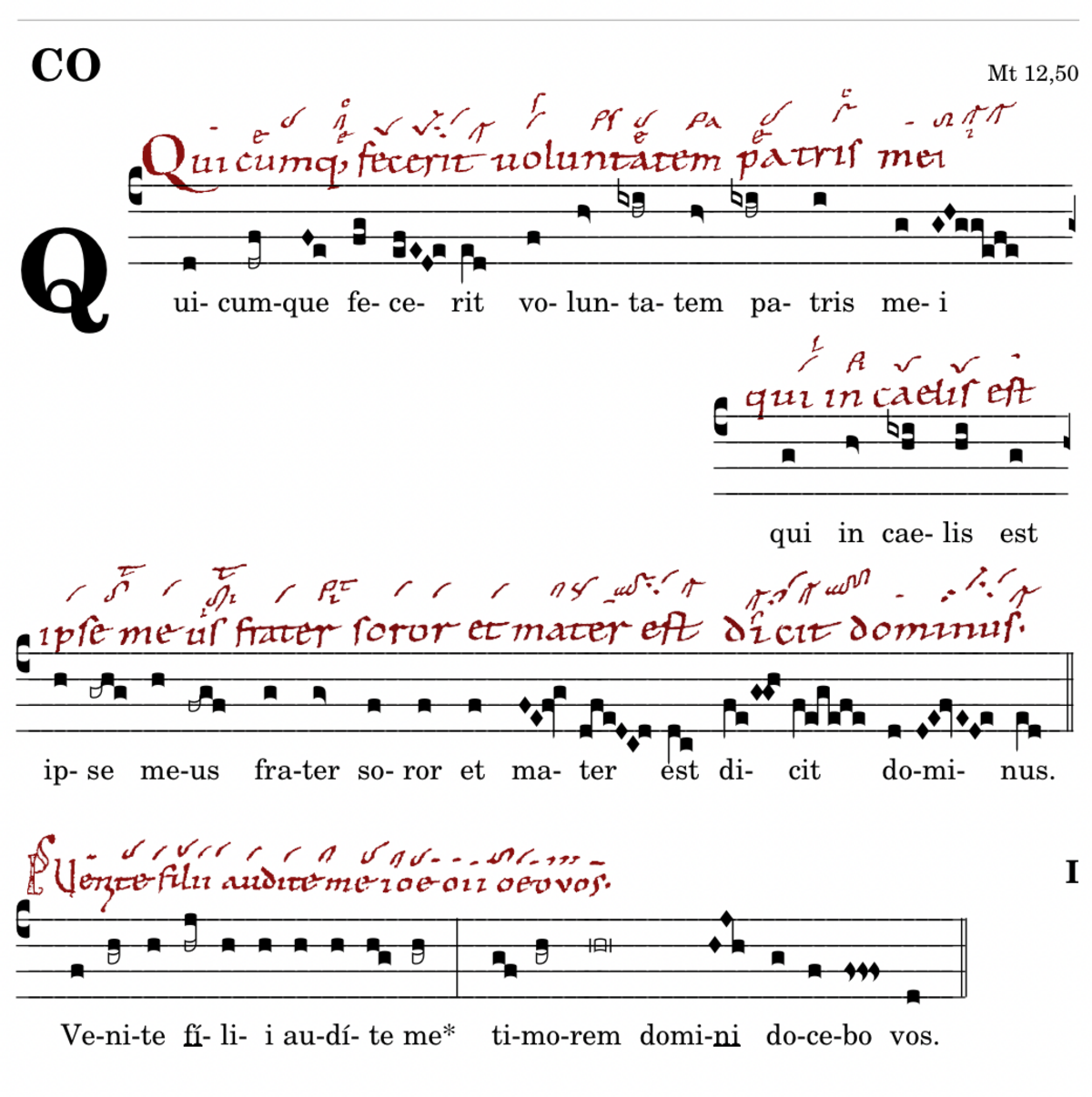 Quicumque fecerit voluntatem patris mei / qui in caelis est / ipse meus frater soror et mater est / dicit dominus.
