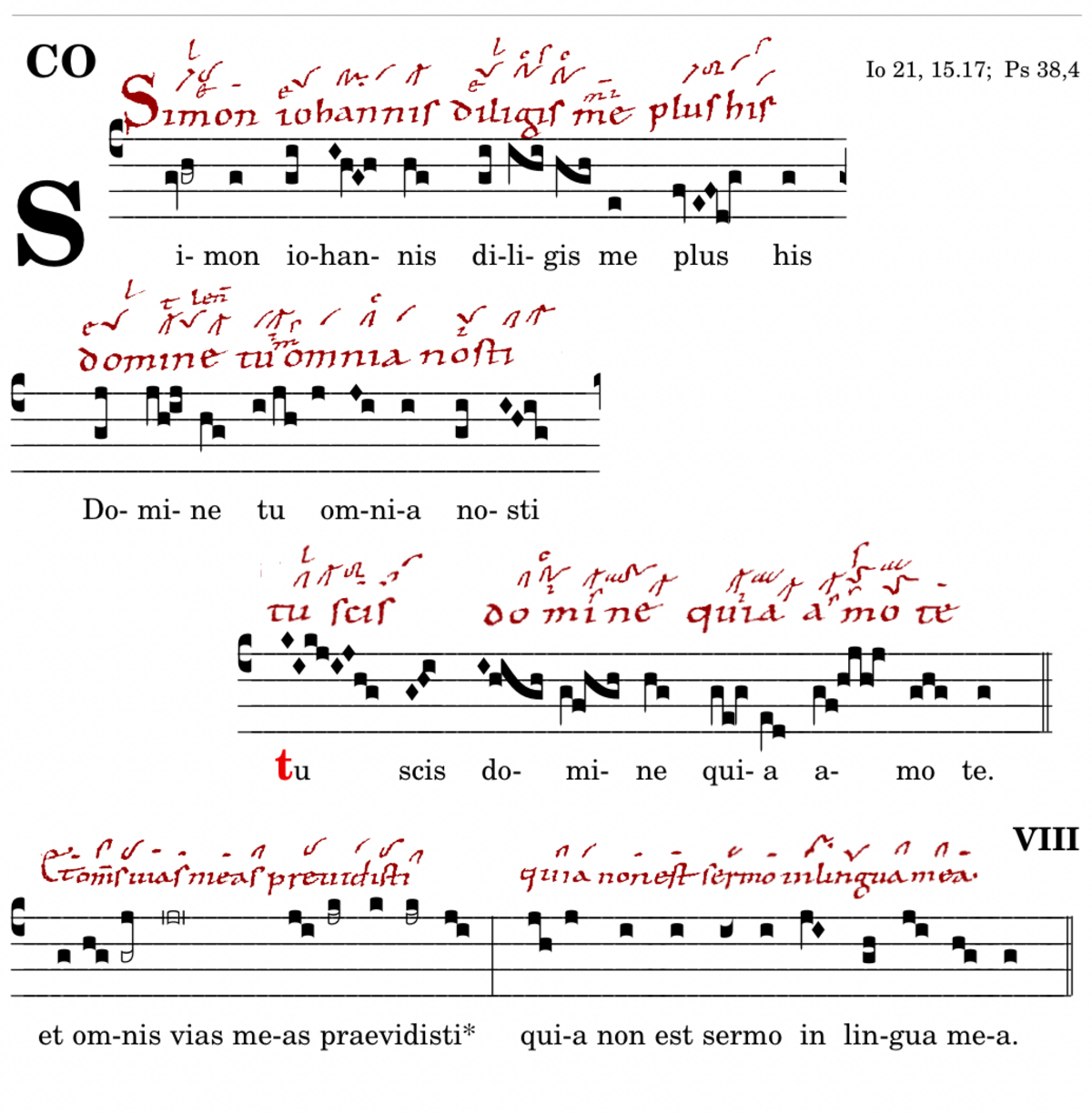 0734 ⟽ CO 8 ⟾ 0736 xxx ↘️Simon iohannis diligis me plus his / domine tu omnia nosti / tu scis domine quia amo te.