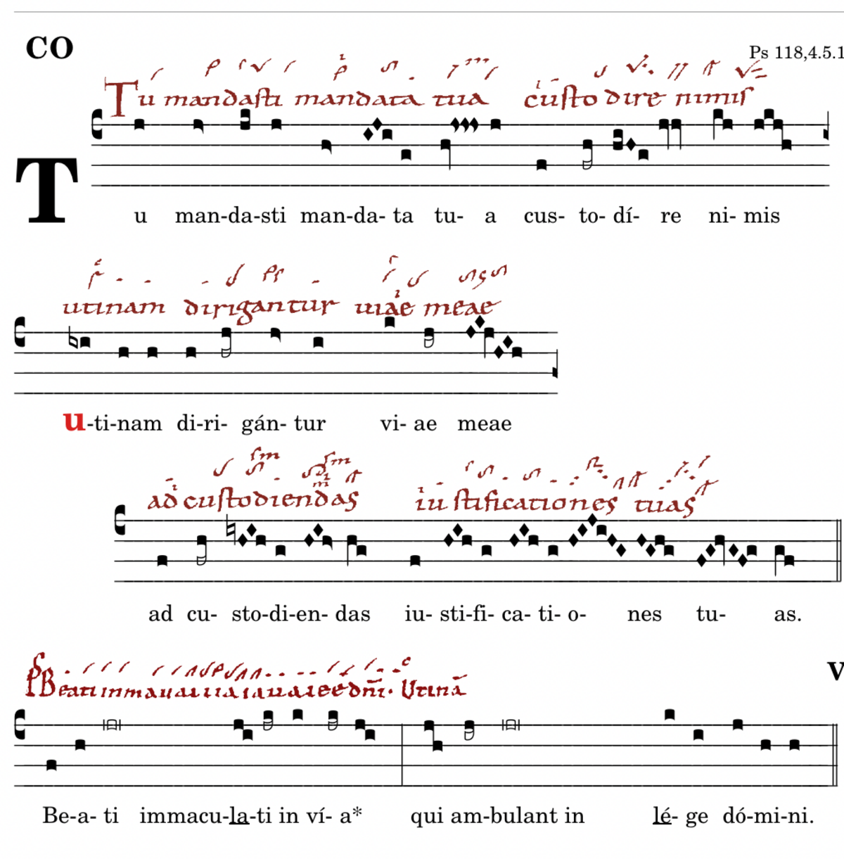 Tu mandasti mandata tua / custodire nimis / utinam dirigantur viae meae / ad custodiendas iustificationes tuas.
