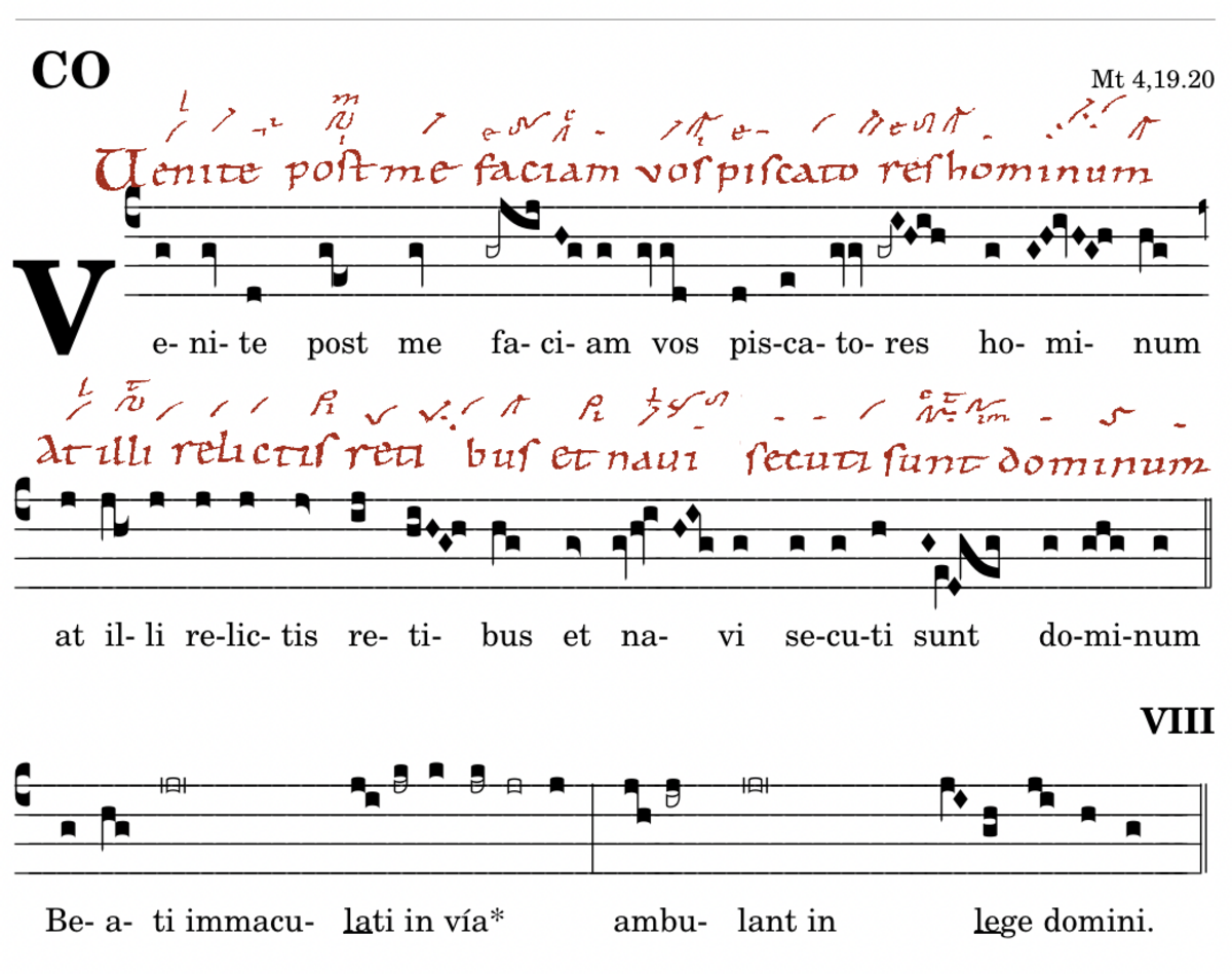 Venite post me / faciam vos piscatores hominum / at illi relictis retibus et navi / secuti sunt dominum.