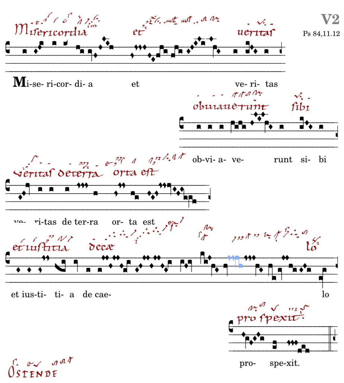 V2. Misericordia et veritas obviaverunt sibi / veritas de terra orta est / et iustitia de caelo prospexit.