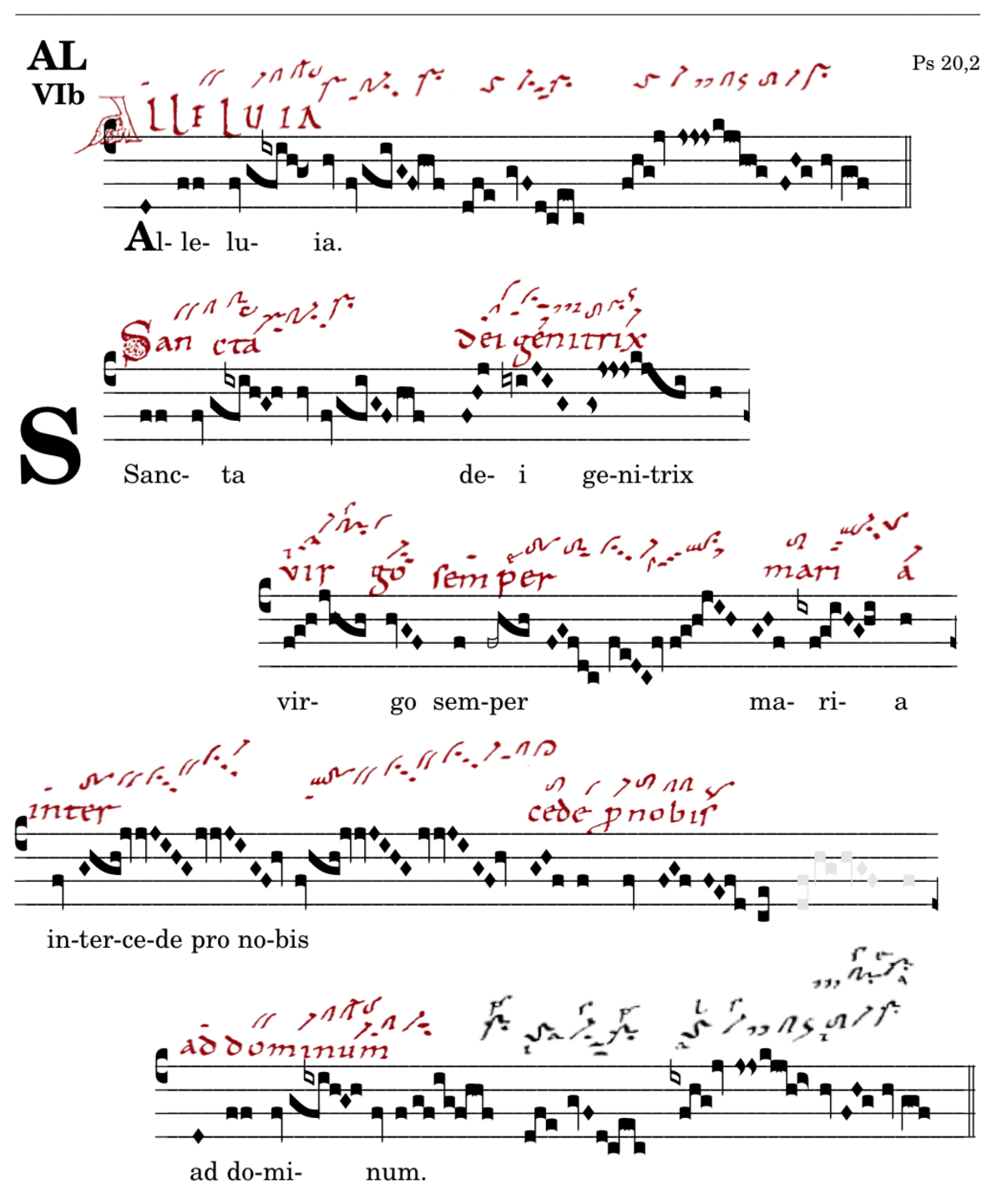 V. Sancta dei genitrix / virgo semper maria * intercede pro nobis / ad dominum.