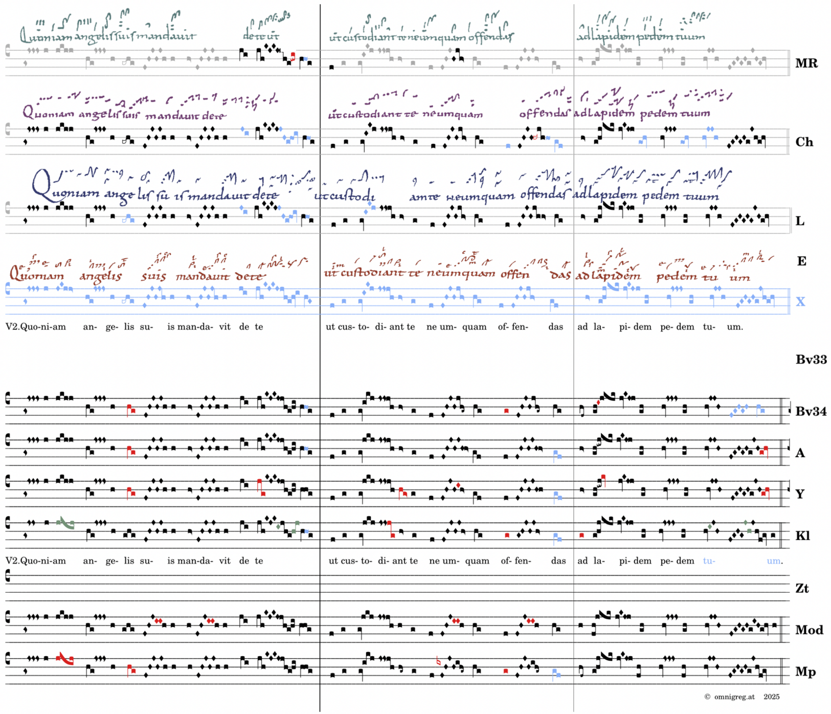 OF – V1 – V2 – V3 xxx ↘️ xxx Quoniam angelisV2. Quoniam angelis suis mandavit de te / ut custodiant te ne umquam offendas / ad lapidem pedem tuum.