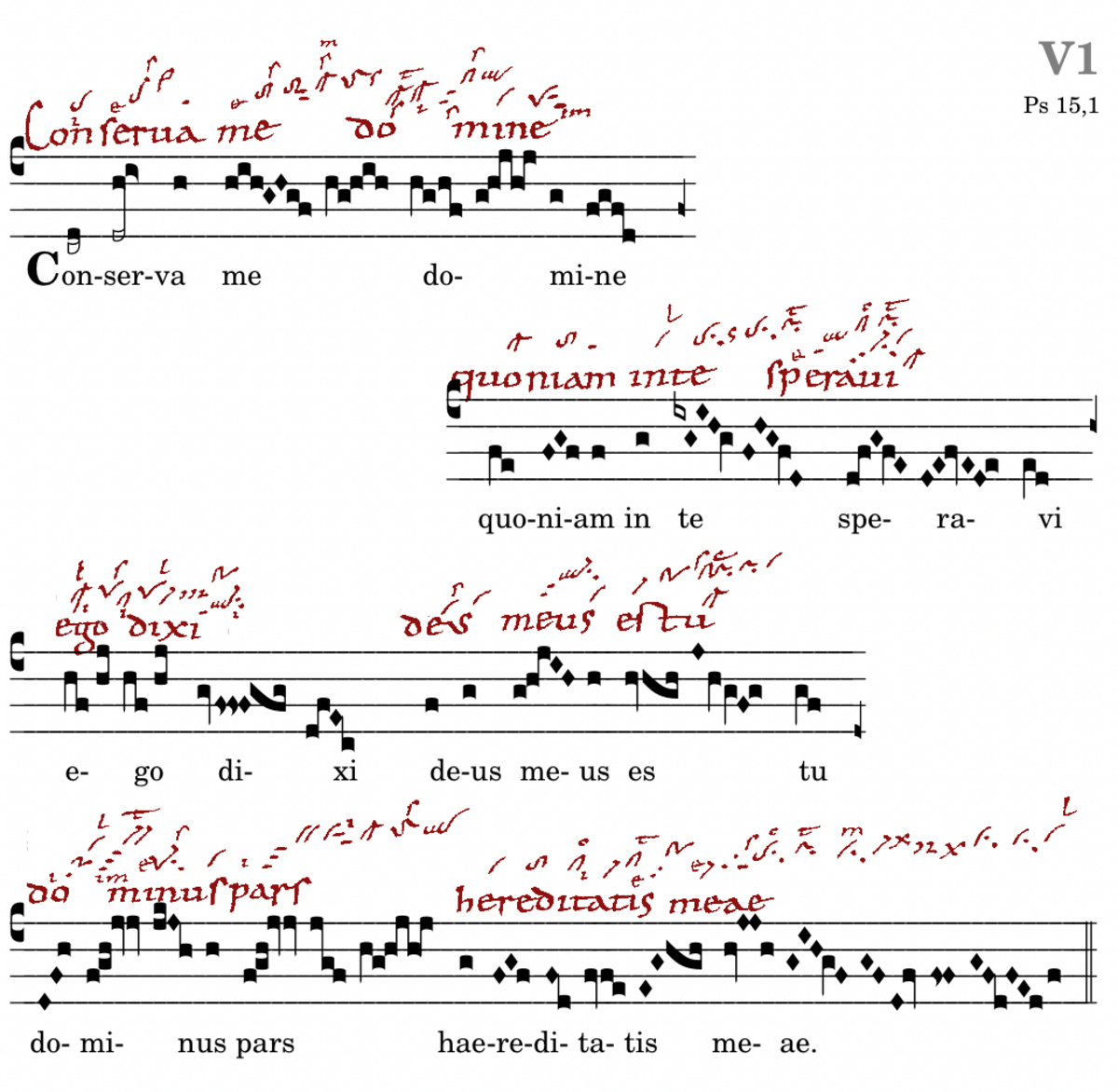 V1. Conserva me domine quoniam in te speravi / ego dixi deus meus es tu / dominus pars hereditatis meae.