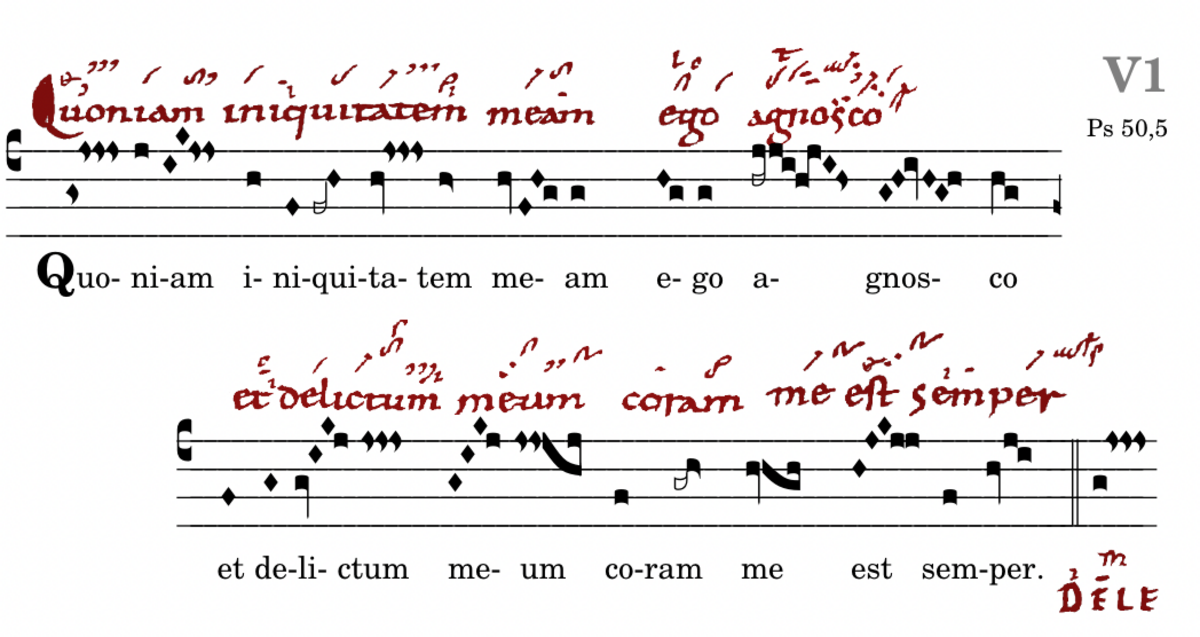 V1. Quoniam iniquitatem meam ego agnosco / et delictum meum coram me est semper.