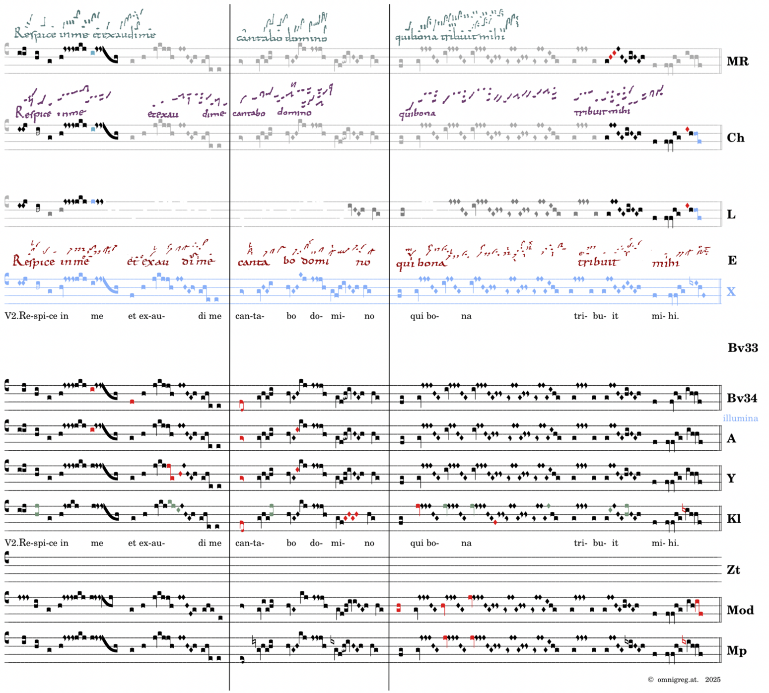 V2. Respice in me / et exaudi me, cantabo domino / qui bona tribuit mihi.