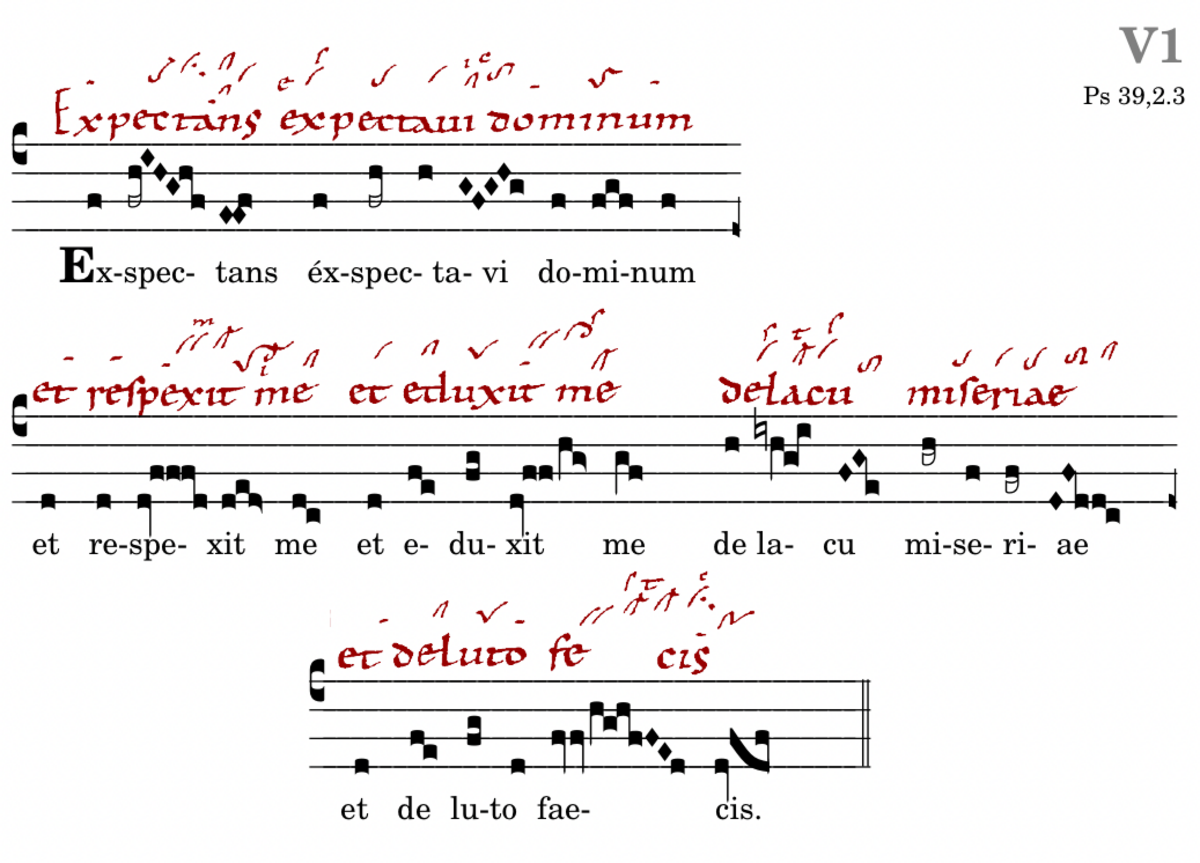 V1. Expectans expectavi dominum / et respexit me et eduxit me / de lacu miseriae / et de luto faecis.