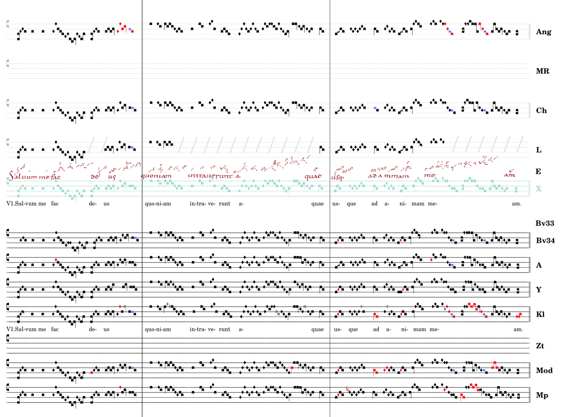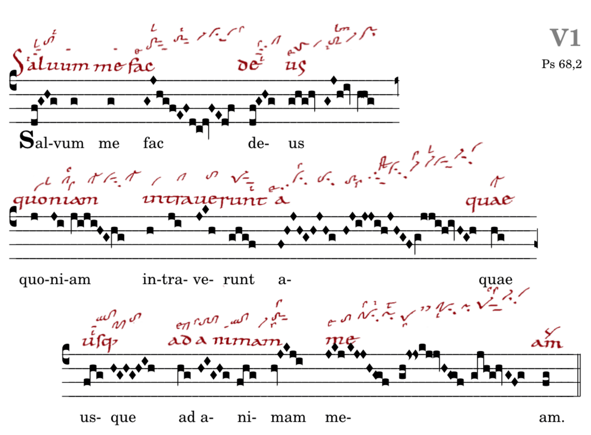 V1. Salvum me fac deus / quoniam intraverunt aquae / usque ad animam meam.