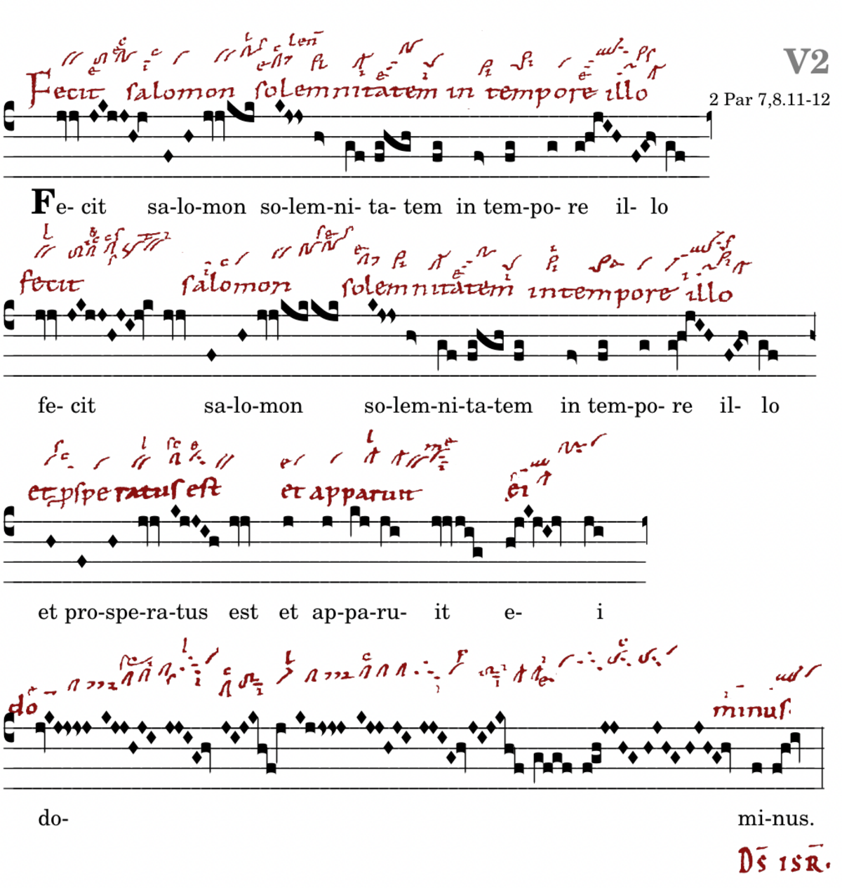 V2. Fecit salomon solemnitatem / in tempore illo / fecit salomon solemnitatem / in tempore illo / et prosperatus est / et apparuit ei / dominus / 📍deus israel.