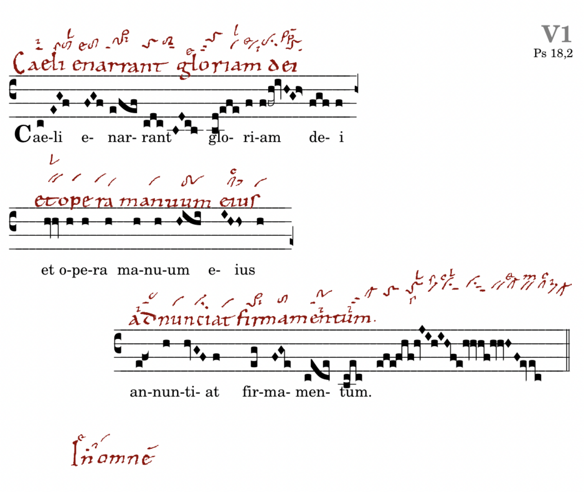 OF – V1 – V2 – V3 xxx ↘️ xxx Caeli enarrantV1. Caeli enarrant gloriam dei / et opera manuum eius annuntiat firmamentum.