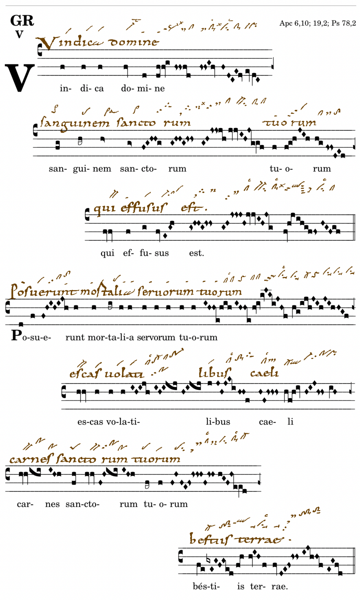 Vindica domine / sanguinem sanctorum * tuorum / qui effusus est. V. Posuerunt mortalia servorum tuorum / escas volatilibus caeli * carnes sanctorum tuorum / bestiis terrae.