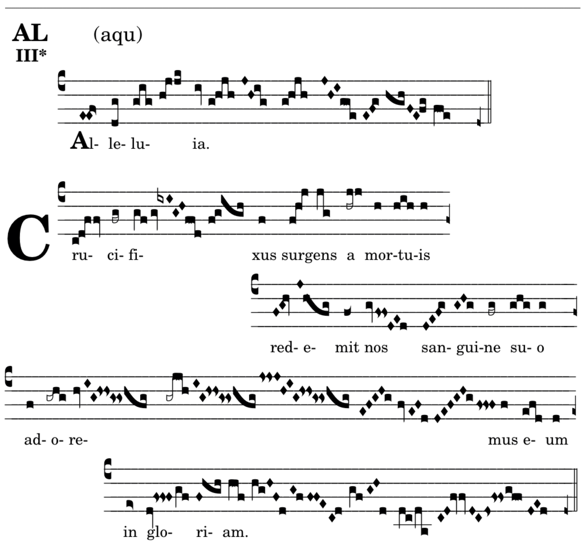 V. Crucifixus / surgens a mortuis * redemit nos / sanguine suo * adoremus eum / in gloriam.