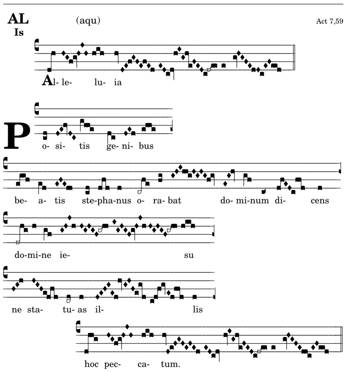 V. Positis genibus / beatus stephanus orabat / dominum dicens / domine iesu / ne statuas illis / hoc peccatum.