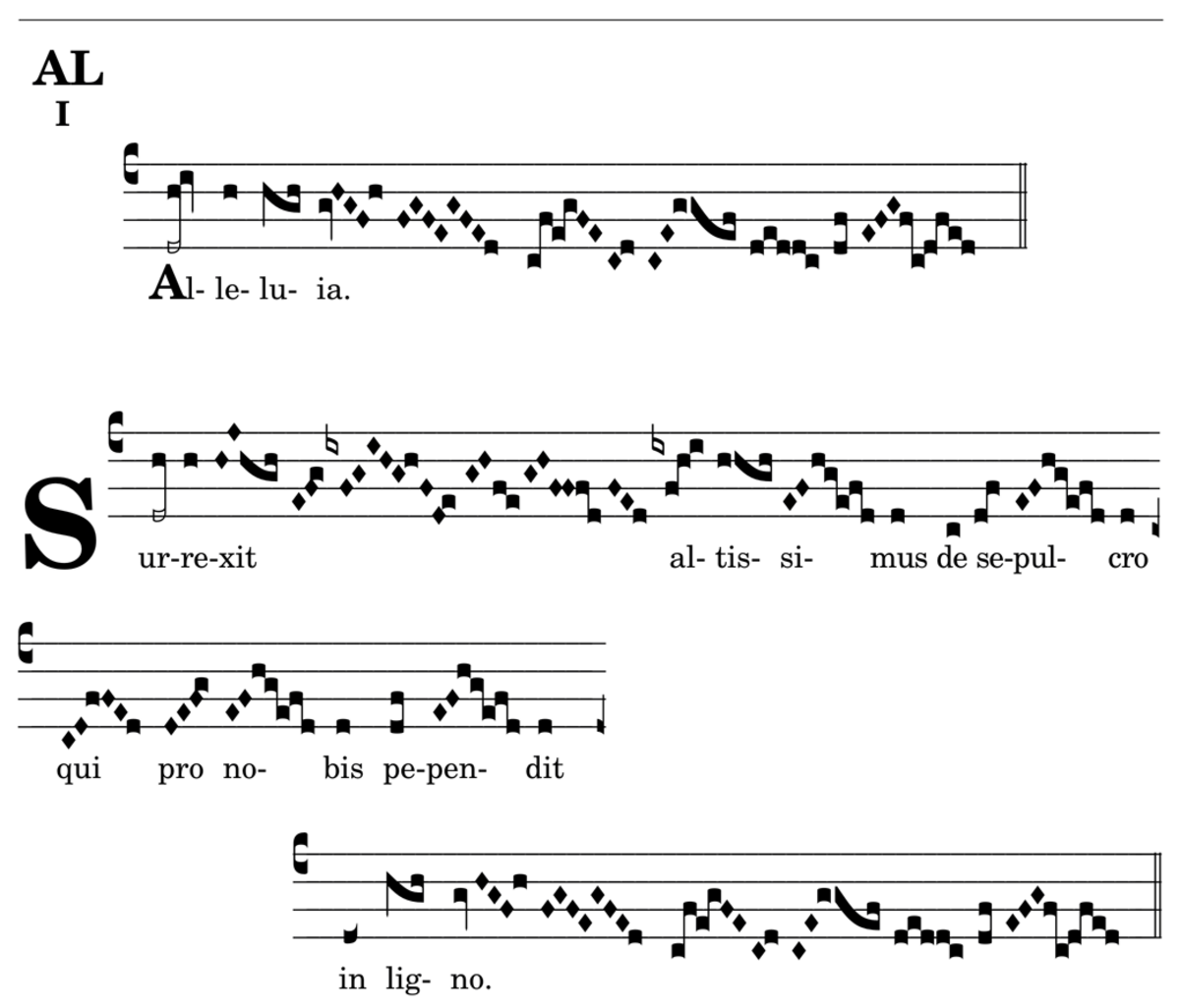 V. Surrexit altissimus / de sepulcro * qui pro nobis pependit / in ligno.
