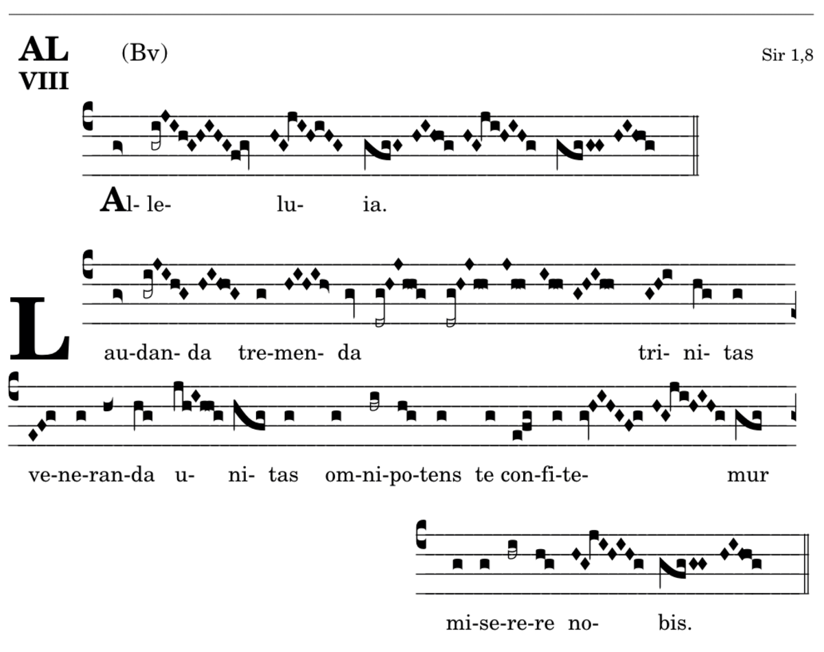 V. Laudanda tremenda trinitas veneranda / unus omnipotens te confitemur / miserere nobis.