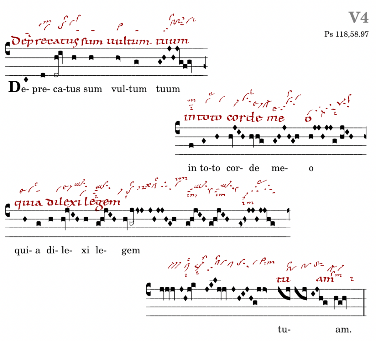 V4. Deprecatus sum vultum tuum / in toto corde meo / quia dilexi legem tuam