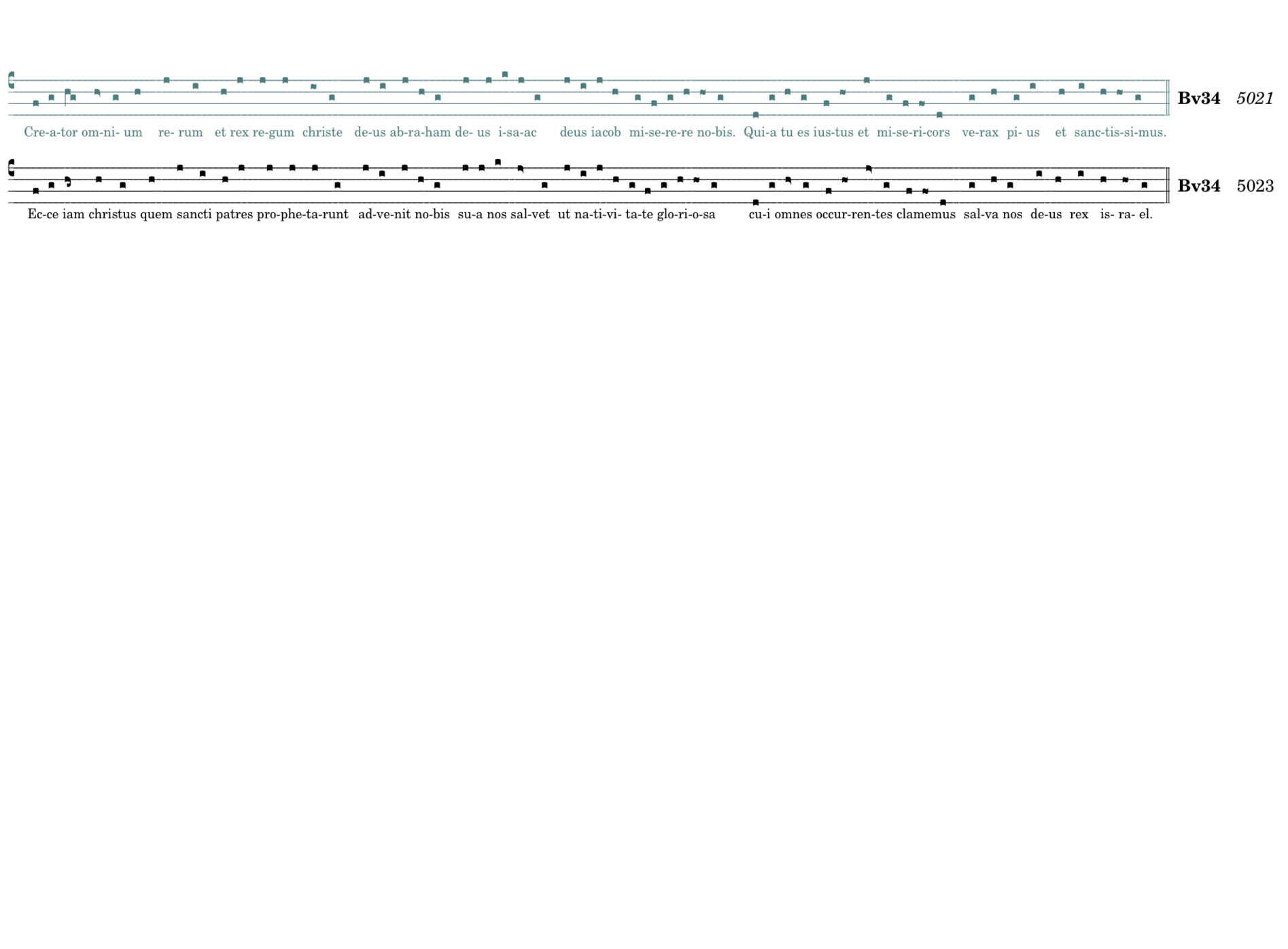 Bv34 bringt zum Typusalleluia „Ostende nobis“ zwei unterschiedliche Sequenztexte auf die selbe Melodie 5021 + 5023