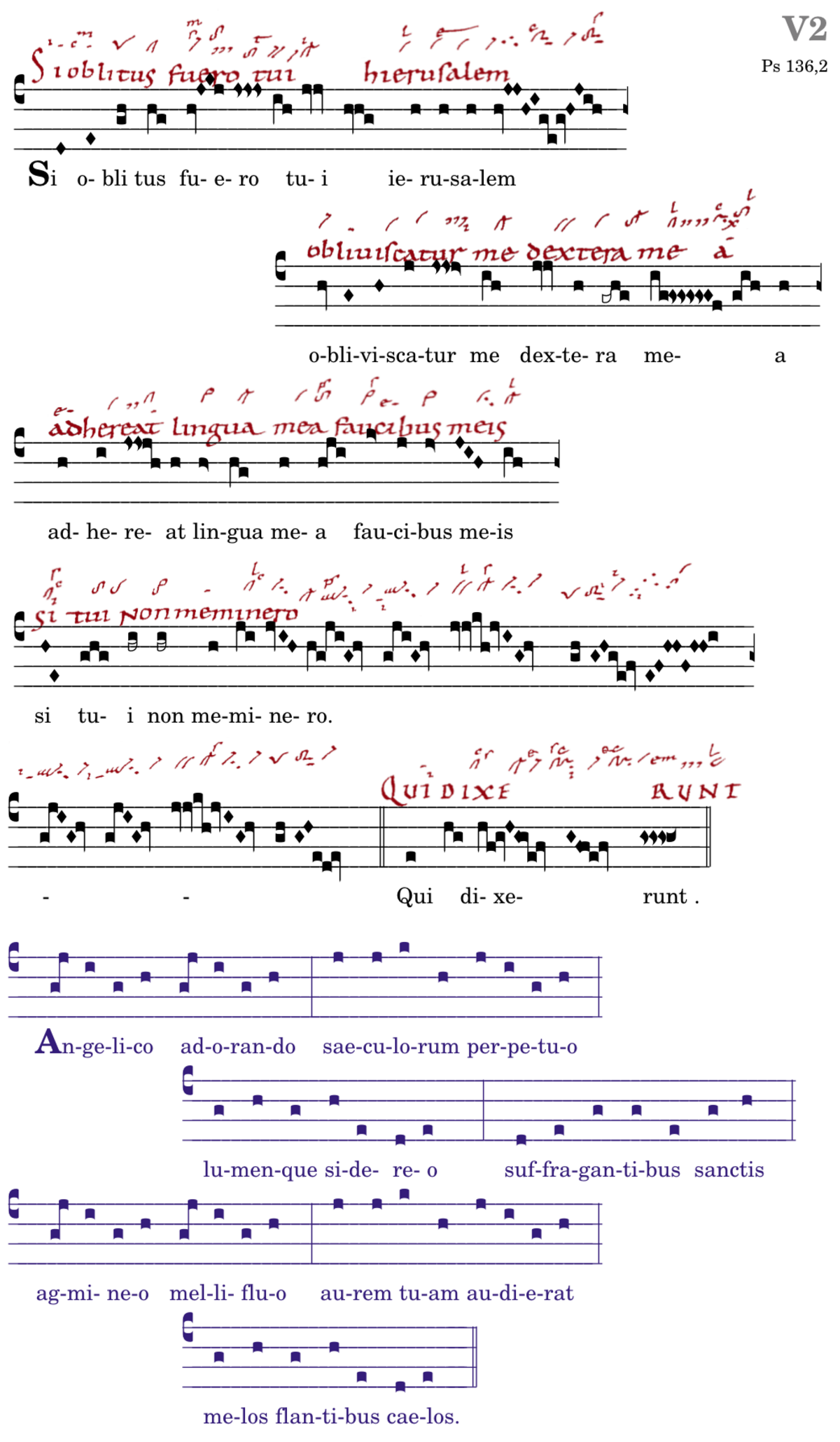 Angelico adorando / saeculorum perpetuo / lumenque sidereo / suffragantibus sanctis / agmineo mellifluo / aurem tuam audierat / melos flantibus caelos.